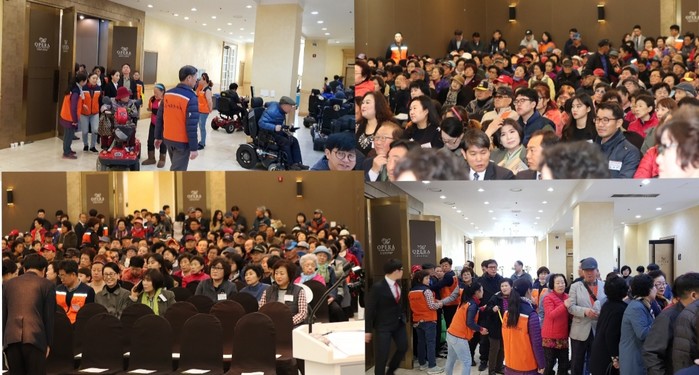 약 천여명의 서구장애인분들이 참석한 기념행사에서 사랑의 사다리 밴드 회원 50명은 오전 9시부터 교통봉사, 행사장 정리 및 안내를 하면서 원활한 행사 진행 봉사를 하였다.