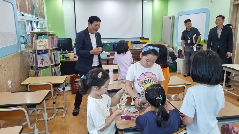이날 정철 의원은 성산초등학교의 늘봄학교 시설 및 교육활동에 대한 안전 점검을 실시하고, 교육프로그램을 참관한 뒤 학생들에게 행복도시락을 전달했다.