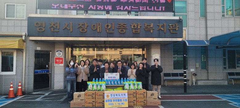 [경북 세계타임즈=한윤석 기자] 경상북도의회 윤승오.이춘우 도의원이 2025년 설을 맞이해 지난 17일 영천시 소재 마야정신요양원, 영천시장애인종합복지관, 영천시종합사회복지관을 방문해 새해 인사를 하며 이웃사랑을 실천했다.