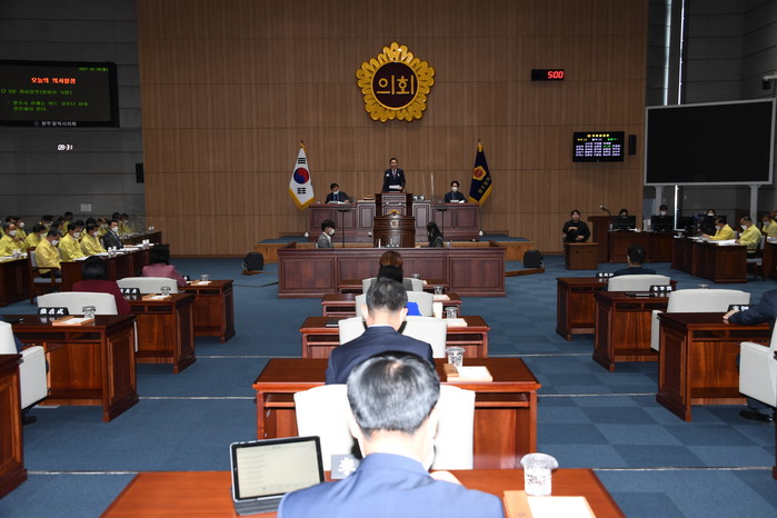 한편, ▲임미란 의원 ‘광주시 이제는 위드 코로나 시대 선언해야 한다!’ ▲김익주 의원 ‘광주 전남 행정통합 관련’ ▲김나윤 의원 ‘무상급식 식품비, 현실 물가 반영해야’ 라는 주제의 5분 자유발언과 김점기 의원의 ‘자치구간 경계조정 마무리 지어야’라는 주제의 긴급현안질문이 이어졌다.