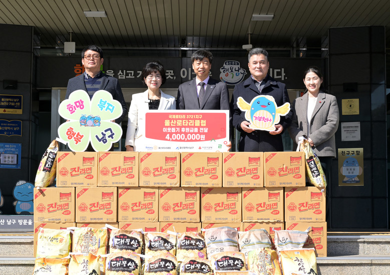 [울산 세계타임즈=이호근 기자] 울산 로타리클럽(회장 신상선)은 28일 남구청을 방문해 취약아동을 돕는데 써달라며 200만 원 상당의 백미와 라면, 현금 200만 원 등 400만 상당의 후원금품을 기부했다.