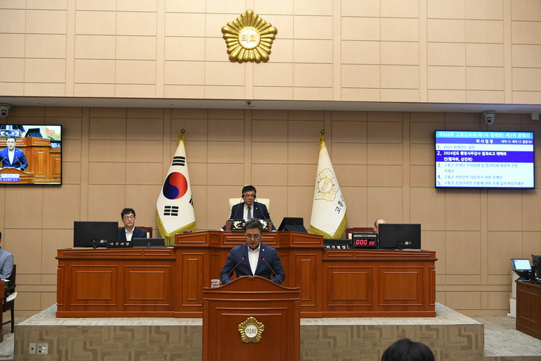 이번 정례회에서는 2023 회계연도 결산 및 ▲ 고흥군 장애인 인권침해 및 범죄피해 예방에 관한 조례안(전명숙 의원) ▲ 고흥군 군계획 조례 일부개정조례안(김민열 의원) 등 의원 발의 조례 3건, ▲ 고흥군 공공디자인 진흥에 관한 조례 일부개정조례안 ▲ 고흥군 지방공무원 정원 조례 일부개정조례안 등 고흥군수가 제출한 조례 2건 및 기타 안건 5건 등 총 10개의 안건을 처리했다.