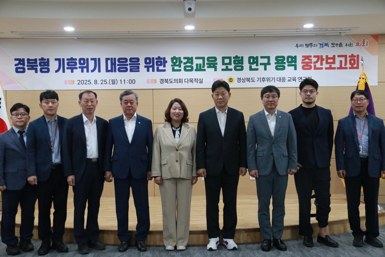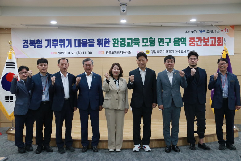 [경북 세계타임즈=한윤석 기자] 경북도의회 「경상북도 기후위기 대응 교육 연구회」(대표 박용선 의원)는 25일(월) 오전 11시 도의회 회의실에서 ‘경북형 기후위기 대응을 위한 환경 교육 모형’ 연구용역 중간보고회를 개최했다.