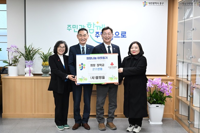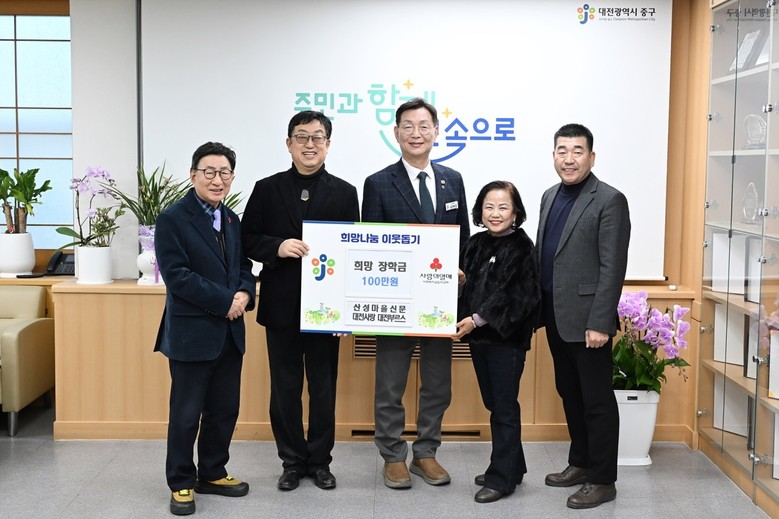 [중구 세계타임즈=이채봉 기자] 대전 중구(구청장 김제선)는 산성마을신문(대표 이기전)과 (사)물방울(대표 이준석)에서 최근 서울대학교 의과대학에 합격한 태평2동 저소득 가정 학생을 위해 장학금 311만 원을 기탁했다고 밝혔다.