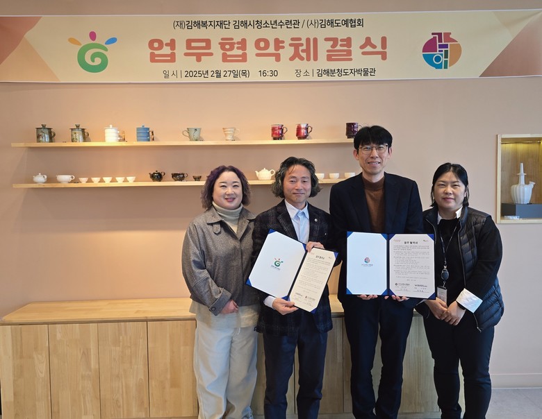 [김해시 세계타임즈=최성룡 기자] (재)김해시복지재단(대표이사 임주택) 김해시청소년수련관과 (사)김해도예협회(이사장 배창진)는 지난 27일 청소년 도예 체험 활성화를 위한 업무협약(MOU)을 체결했다. 이번 협약을 통해 두 기관은 ‘청소년도예체험단’ 운영을 비롯한 다양한 전통 도예 교육 프로그램을 공동 추진할 예정이다.