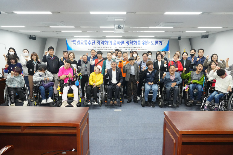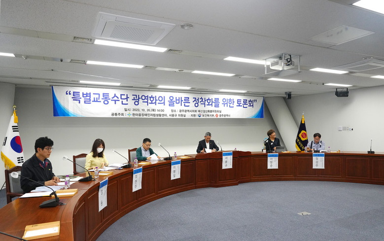 [광주 세계타임즈=손권일 기자] 광주광역시의회는 26일 오후 2시 시의회 5층 예결위 회의실에서 ‘특별교통수단 광역화의 올바른 정착화를 위한 토론회’ 라는 주제로 정책토론회를 개최했다.