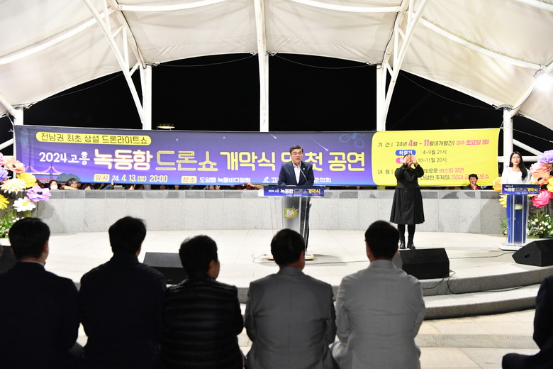 이재학 의장은 축사를 통해 “고흥은 광활한 공역과 장애물 없는 간척지 등 드론산업의 최적지”라며 “드론쇼가 녹동항의 주말 유동인구 증가와 상권활성화에 크게 기여할 것으로 기대된다”라고 말했다.
