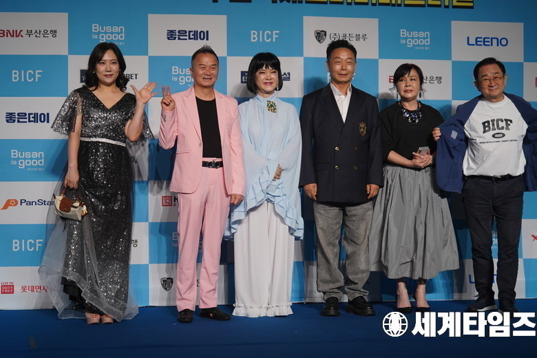 29일 오후 부산 해운대구 벡스코에서 열린 제13회 부산국제코미디페스티벌 개막식에서 원로 개그맨들이 블루카펫에 올라 포즈를 취하고있다.