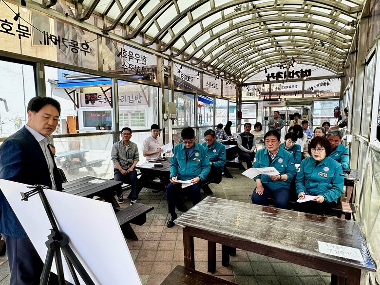 첫 방문지인 동쪽바다중앙시장에서는 문화관광형 시장 육성사업과 주말 야시장 공모사업의 사업내용 및 추진현황, 향후 계획 등을 청취하는 한편, 지역경제 활성화 및 관광 자원으로서의 시장 역할 강화 방안에 대해 함께 논의했다.