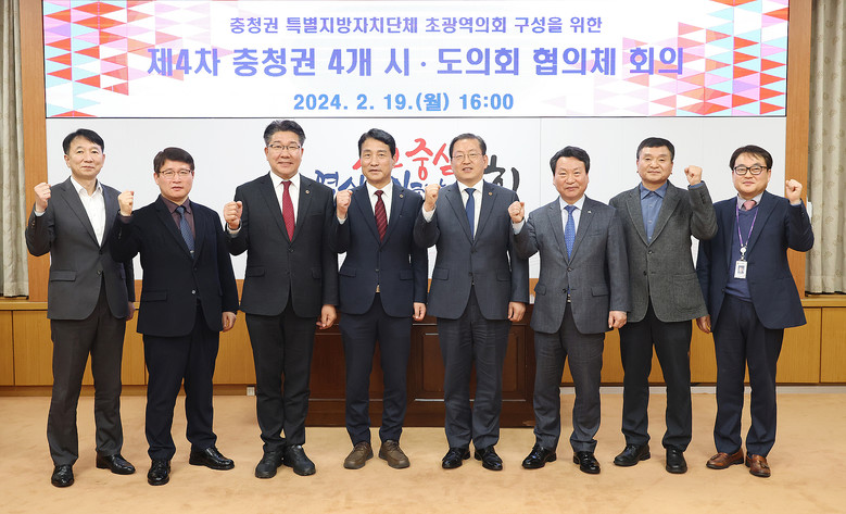 그간 충청권 4개 시·도 의회는 초광역의회 구성을 위한 규약 합의와 4개 시·도 의회의 연계·협력 방안 등 논의를 위해 시·도의회 운영위원장 및 사무처장 등 8명으로 구성된 협의체를 구성, 운영해 왔으며, 이번 회의는 충청권지방정부연합 규약안 관련 의견수렴과 향후 계획 논의를 위해 마련됐다.