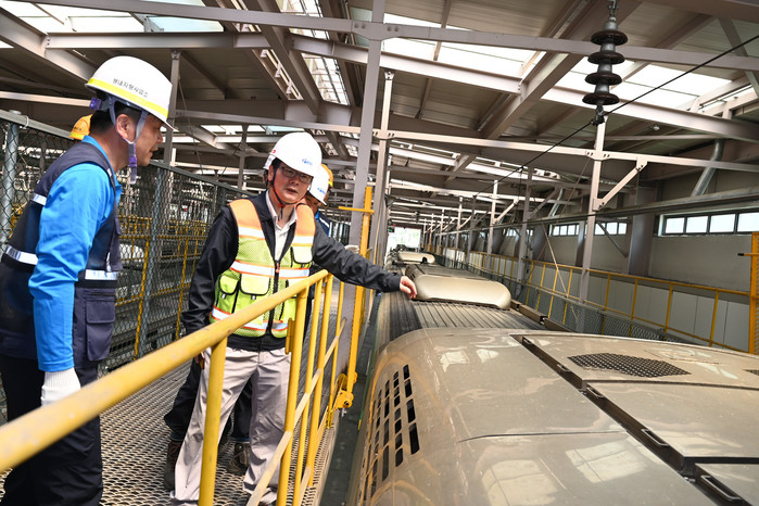[세계타임즈 이영진 기자]손병석 코레일 사장(오른쪽)이 11일 오후 경기도 남양주 평내차량기지에서 ITX-청춘 냉방장치 정비 작업을 둘러보고 쾌적하고 안전한 열차 운행을 위해 사전에 철저히 점검할 것을 당부했다.