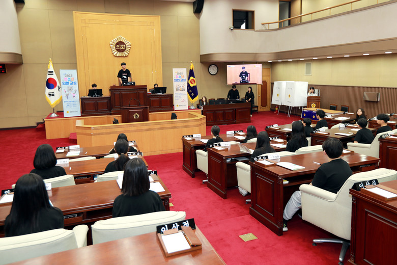 청소년 의회교실은 학생들이 1일 도의원이 되어 본회의장에서 의장 선거, 안건처리, 2분 자유발언 등 의정활동을 체험하는 프로그램이다.