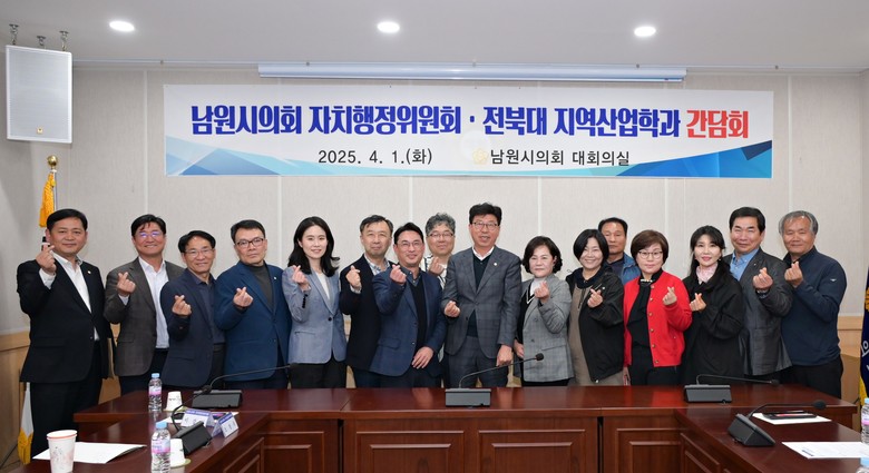 이날 간담회 행사에는 남원시의회 손중열 자치행정위원장을 비롯한 위원들과 전북대 지역산업학과 전경민 학과장 외 교수진과 학생, 남원시 교육체육과장 등 총 22여 명이 참석했다.
