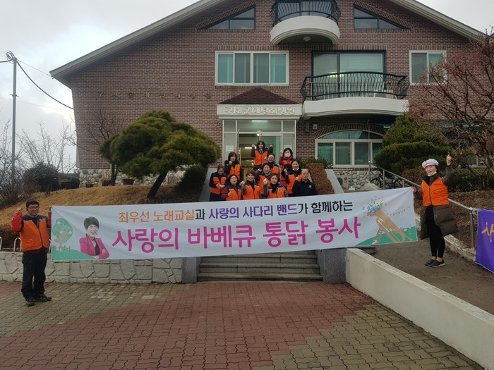 이정제 리더는 “최우선 노래교실과 사랑의 사다리 밴드는 매월1회씩 대전시 5개구 보육원에서 통닭 봉사를 하고 있다.“면서 “3월에는 유성구 장대동에 위치한 천양원에서 봉사를 하기로 했다.”고 말했다.