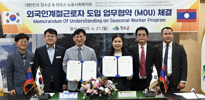 이번 협약은 양국 간 협력을 강화하고 외국인 계절근로자의 원활한 도입과 체류지원을 위한 제도적 기반을 마련하기 위해 추진했다. 협약 체결로 장수군 농가들은 필요한 시기에 외국인 인력을 안정적으로 확보하고 라오스 근로자들도 합법적인 취업 기회를 얻을 수 있게 됐다.