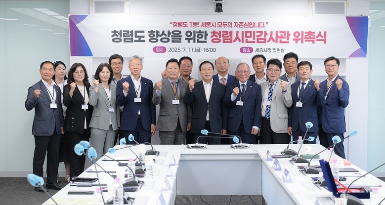 [세종 세계타임즈=이채봉 기자] 세종특별자치시(시장 최민호)가 11일 시청 집현실에서 2025년 청렴사회 민관협의회 정기회의를 통해 시민참여형 감사제도인 청렴시민감사관을 위촉했다.