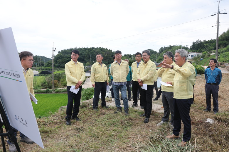 이날 현장에는 류제동 군의회 의장을 비롯한 군의원, 재난안전과장과 농업기반팀장 등 관계 공무원이 참석하였으며, 일선 농업인의 애로사항과 행정 대응 상황을 청취하며 점검을 진행했다.