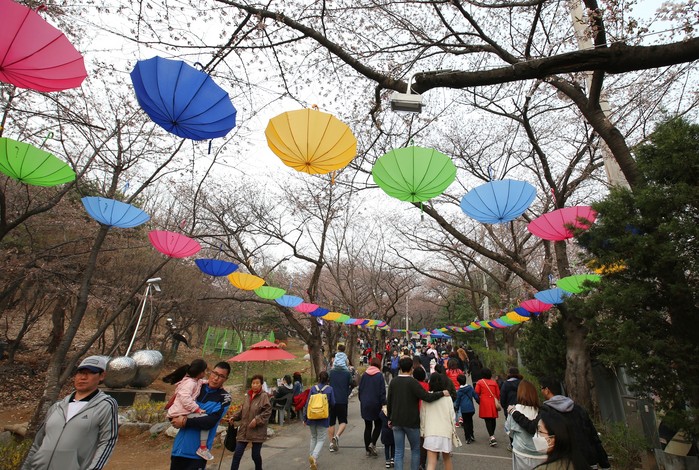 벚꽃축제가 열리는 도당산에서는 아름드리 벚나무 120여 그루가 만들어내는 벚꽃터널을 만날 수 있다. 해마다 벚꽃축제 때면 새하얀 벚꽃터널 아래 20만여 인파의 행렬로 장관을 이룬다. 밤에는 색색의 조명에 물든 벚꽃이 색다른 분위기를 연출한다.