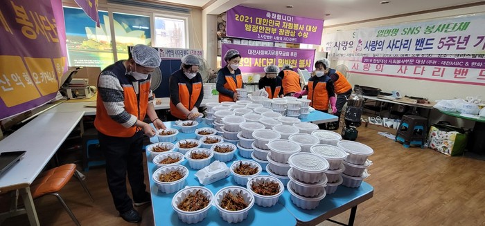 대전시지체장애인협회 김연숙 동구지회장은 “추운 날씨에도 장애인분들게 매월 1회 맛있는 밑반찬을 지원해준 사랑의 사다리 밴드 봉사단체에 감사함을 전한다.”고 말했다.