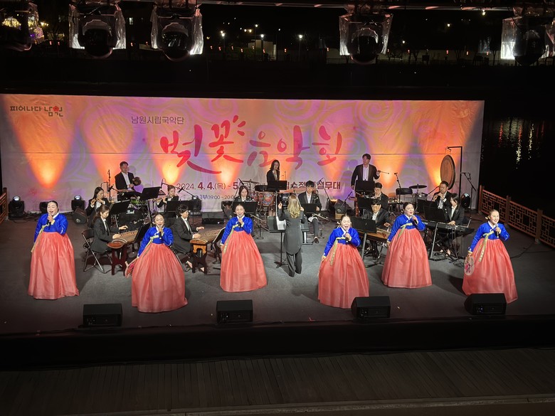 ‘벚꽃음악회’는 남원시립국악단의 기획공연 ‘고·고 국악콘서트’의 일환으로벚꽃 만개 시기에 맞춰 아름다운 벚꽃과 국악이 어우러지는 음악회를 개최하여, 요천을 찾은 남원시민·관광객들에게 낭만적인 야경 속 국악문화 향유의 장을 제공하기 위하여 기획한 공연이다.
