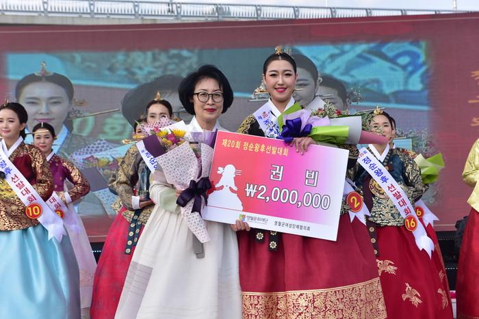 제20회 정순왕후 선발대회에서 이예령(충정순왕후선발대회남 홍성군 홍북읍, 30세)씨가 정순왕후로 선발되었다. 김빈에는 장봉녀(영월군 영월읍, 45세), 권빈에는 최서연(경기도 구리시, 29세)씨가 선발되었다.