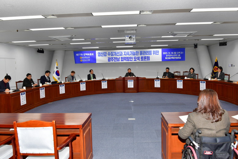 [광주 세계타임즈=손권일 기자] 광주광역시의회가 18일 오후 2시 시의회 5층 예결위 회의실에서 ‘영산강 수질개선과 지속가능한 물관리’를 주제로 정책토론회를 개최했다.