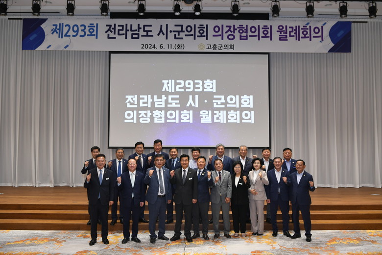 고흥군의회 주관으로 열린 제293회 월례회의는 이재학 고흥군의회 의장을 비롯한 전남 시·군의회 의장, 공영민 고흥군수, 송형곤, 박선준 도의원, 고흥군의회 의원, 기관장 및 지역 언론인 등 140명이 참석한 가운데 진행됐다.
