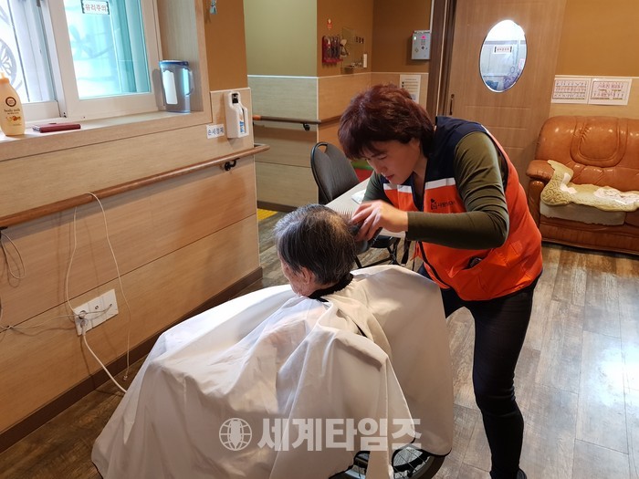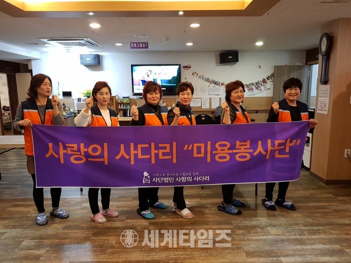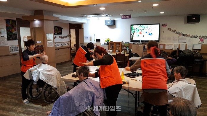 [대전=세계타임즈 이장성 기자] 다양한 봉사활동을 하고 있는 5천명 봉사단체 사랑의 사다리 밴드(리더 이정제)는 6일 오전10시, 대덕구 비래동에 위치한 예사랑실버케어요양원(원장 김숙희)에서 치매 및 와상 어르신들 50분께 미용봉사(회장 김정자)로 사회적 효행을 실천하였다.