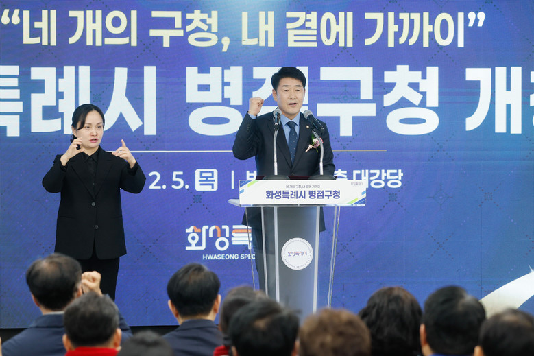 배정수 의장은 “오늘 우리는 새로운 혁신의 문을 열었다. 병점구 개청은 시민 중심 행정이 다시 움트기 시작하는 순간”이라며 “병점은 오랜 세월 화성의 삶과 문화가 집약된 공간이었고, 그 중심에 오늘 시민을 향한 새로운 행정의 심장이 뛰기 시작했다”고 말했다.