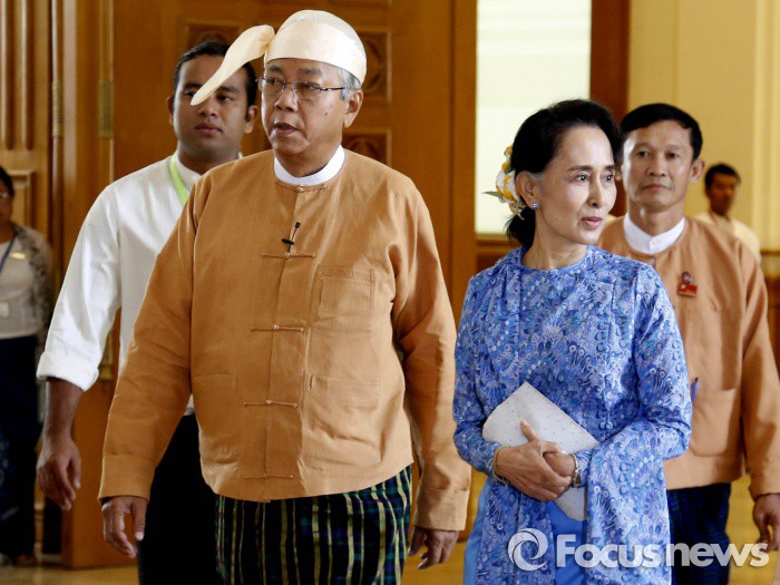 (서울=포커스뉴스) 아웅산 수치의 최측근인 우 틴쩌가 30일(현지시간) 미얀마 9대 대통령에 취임했다.
