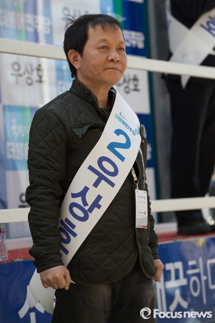 (서울=포커스뉴스) 영화배우 우현이 11일 오후 서울 서대문구 청소년수련관 앞에서 우상호 더불어민주당 서대문구갑 후보를 지지 유세하고 있다.