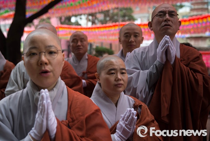 (서울=포커스뉴스) 21일 오전 서울 종로구 조계사에서 관불의식이 열리고 있다. 관불은 불교의식으로 탄생불의 형상에 물을 부어 씻겨 자신의 마음에 쌓인 죄와 번뇌를 맑고 깨끗하게 만들어 복을 누리게 된다고 알려진 의식이다.