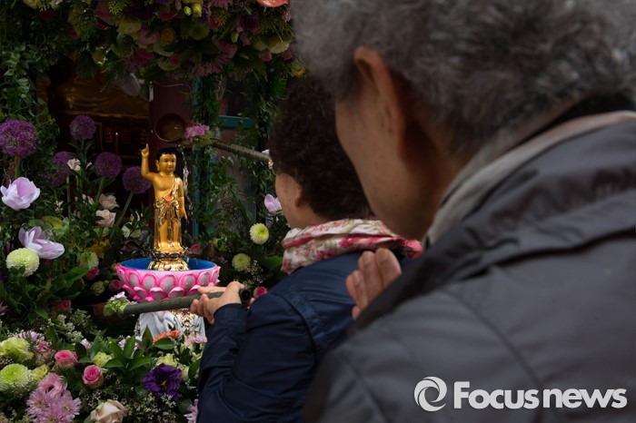 (서울=포커스뉴스) 21일 오전 서울 종로구 조계사에서 관불의식이 열리고 있다. 관불은 불교의식으로 탄생불의 형상에 물을 부어 씻겨 자신의 마음에 쌓인 죄와 번뇌를 맑고 깨끗하게 만들어 복을 누리게 된다고 알려진 의식이다.