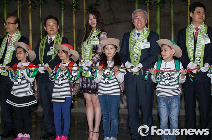 (용인=포커스뉴스) 21일 오전 경기도 용인시 에버랜드에서 열린 '판다월드 개관식'에서 정연만(왼쪽부터) 환경부 차관, 남경필 경기도지사, 미쓰에이 수지, 김종덕 문화체육관광부 장관, 탄광민 중국 국가 임업국 사장(차관급)을 비롯한 참석자들이 기념촬영을 하고 있다.