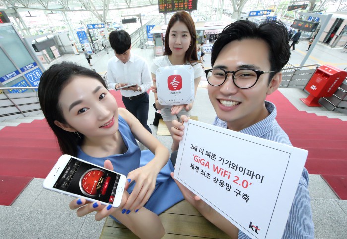 (서울=포커스뉴스) KT는 기존 기가 와이파이(GIGA WiFi)보다 2배 빠른 1.73Gbps(초당 전송속도)의 속도를 제공하는 ‘기가 와이파이 2.0’을 22일부터 선보인다.