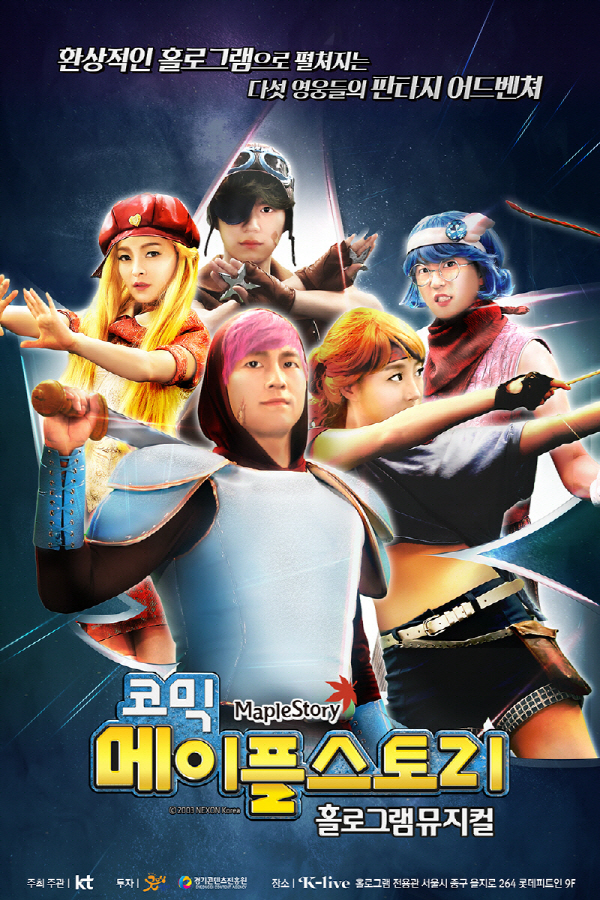 코믹 메이플스토리 홀로그램뮤지컬과 관련한 자세한 내용은 공식 페이스북 페이지 및 케이라이브 홈페이지를 통해 확인할 수 있다.코믹 메이플스토리 홀로그램뮤지컬 포스터 <사진제공=넥슨>
