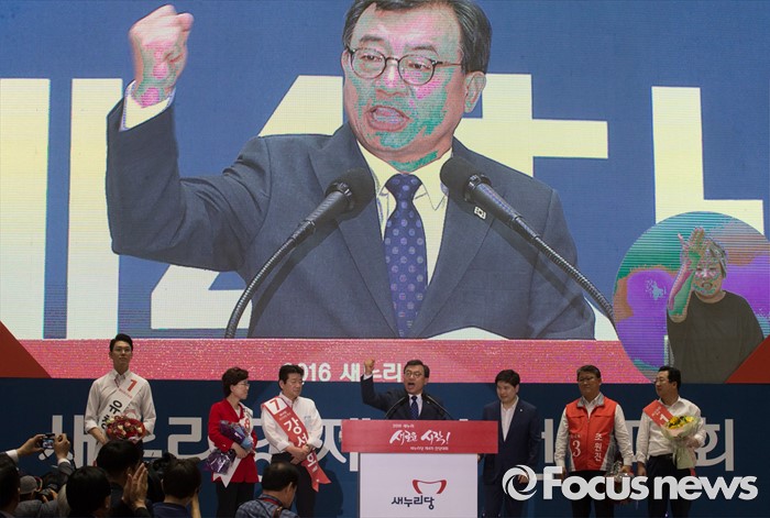 (서울=포커스뉴스) 9일 오후 서울 송파구 잠실실내체육관에서 열린 새누리당 4차 전당대회에서 당대표로 선출된 이정현 의원이 수락연설을 하고 있다.